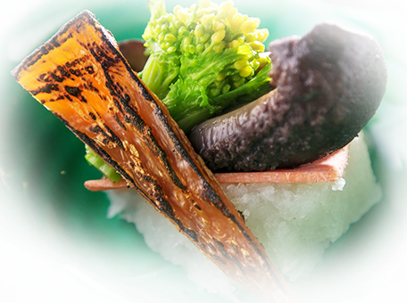 食材にあわせて時にはシンプルに、また時には手を掛け、炭火、上火を使い分けて味はもちろん、色、形、組み合わせる食材をバランス良く「焼き上げる」焼き物です。 季節の彩りを表現する添え物にもこだわりを感じていただける、日本料理の隠れた主役です。